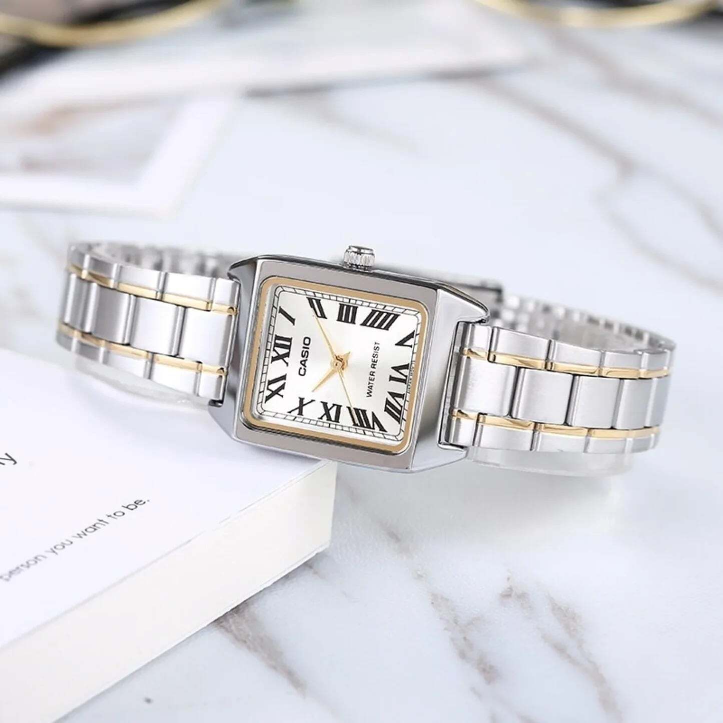 ساعت مچی زنانه کاسیو مدل LTP-V007SG-9BUDF ۴,۸۰۰,۰۰۰ تومان • شیشه ی معدنی• 1 سال گارانتی بین المللی مناسب برای بانوان دختران رده کلاسیک روزمره رنگ به کار رفته نقره ای طلائی رنگ صفحه نقره ای رنگ بند نقره ای طلایی افزودن به سبد خریدافزودن به علاقه مندی ها مشخصات محصول مشاهده در سایت CASIO نظرات مشخصات کلیبرندCASIOاصالت کشور برندژاپنمناسب برایبانوان - دخترانردهکلاسیک - روزمرهنوع موتور (نیروی محرکه)باتریمقاومت در برابر آبپاشیدگی آب روی ساعتمشخصات ظاهریشکل قابمستطیلصفحه نمایشعقربه دار (آنالوگ)رنگ به کار رفتهنقره ای - طلائیرنگ صفحهنقره ایرنگ بندنقره ای - طلاییمشخصات فیزیکیجنس به کار رفتهبند استیل - قاب فلزی (آبکاری یونیزاسیون)جنس شیشهمینرالنوع بندپین بند (استیل)جنس بنداستیل ضد زنگعرض قاب (mm)31*22ارتفاع قاب (mm)7.5وزن ساعت (گرم)51گارانتیمدت گارانتییک سال - ایران ، بین المللیمورد گارانتیموتورگارانتی کنندهparseh watch - گارانتی بین المللیضمانتاصالت کالا - باتری (یک سال) برای مشاهده این ساعت در سایت کاسیو کلیک کنید. هنوز نظری ثبت نشده اولین نفری باشید که نظر میدهید ثبت نظر نظر شما راجع به این محصول چیست؟ ساعت مچی زنانه کاسیو مدل LTP-V007SG-9BUDF چه امتیازی به این محصول میدهید. ★ ★ ★ ★ ★ نام شما عنوان نظر شما متن نظر شما
